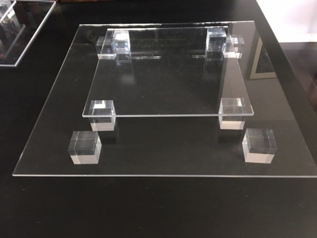 アクリル板とキューブを組み合わせると、2段トレイが作れます。